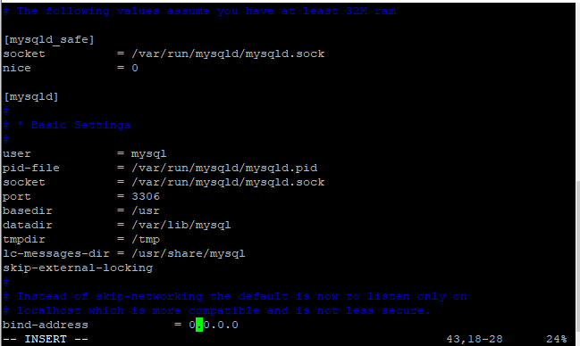 - bind-address 값을 0.0.0.0 으로 수정