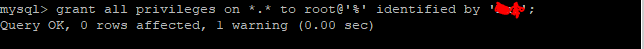 - grant all privileges on *.* to root@'%' identified by '루트계정 비밀번호';