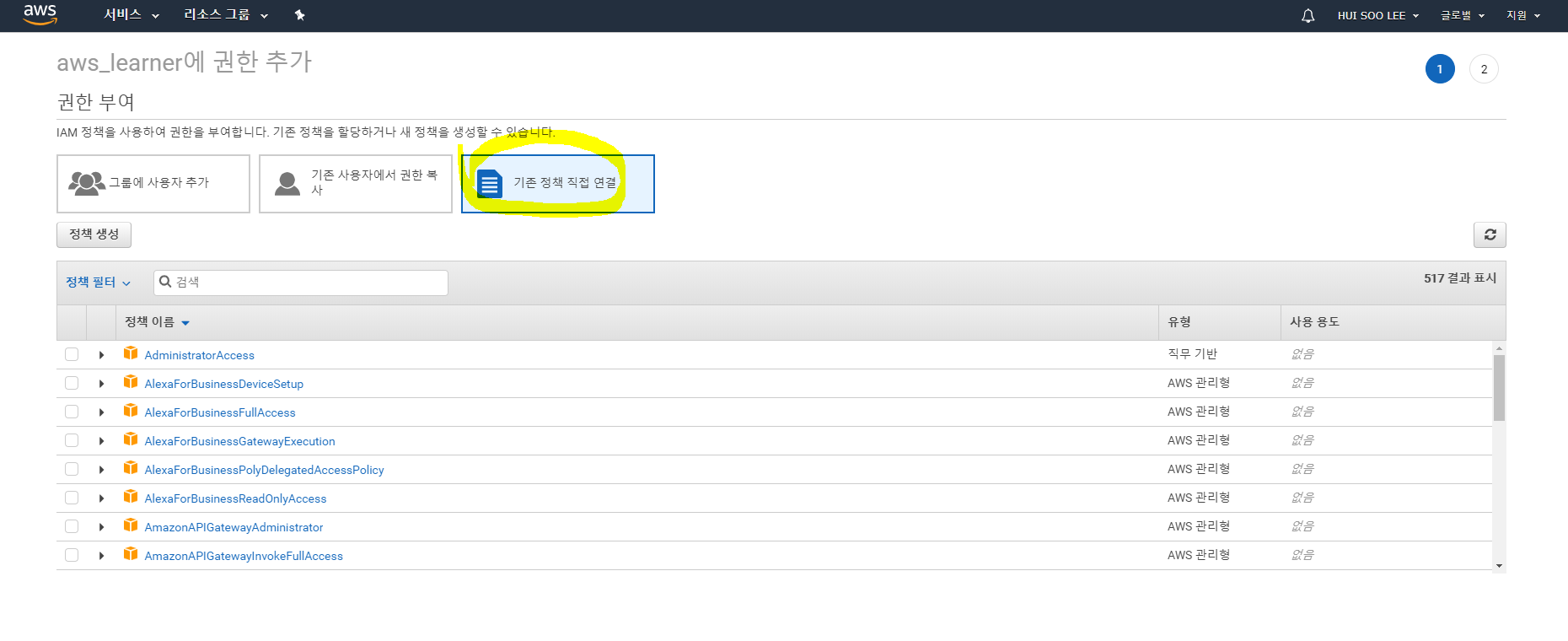 3) 3가지 Case 중 [기존 정책 직접 연결] 클릭