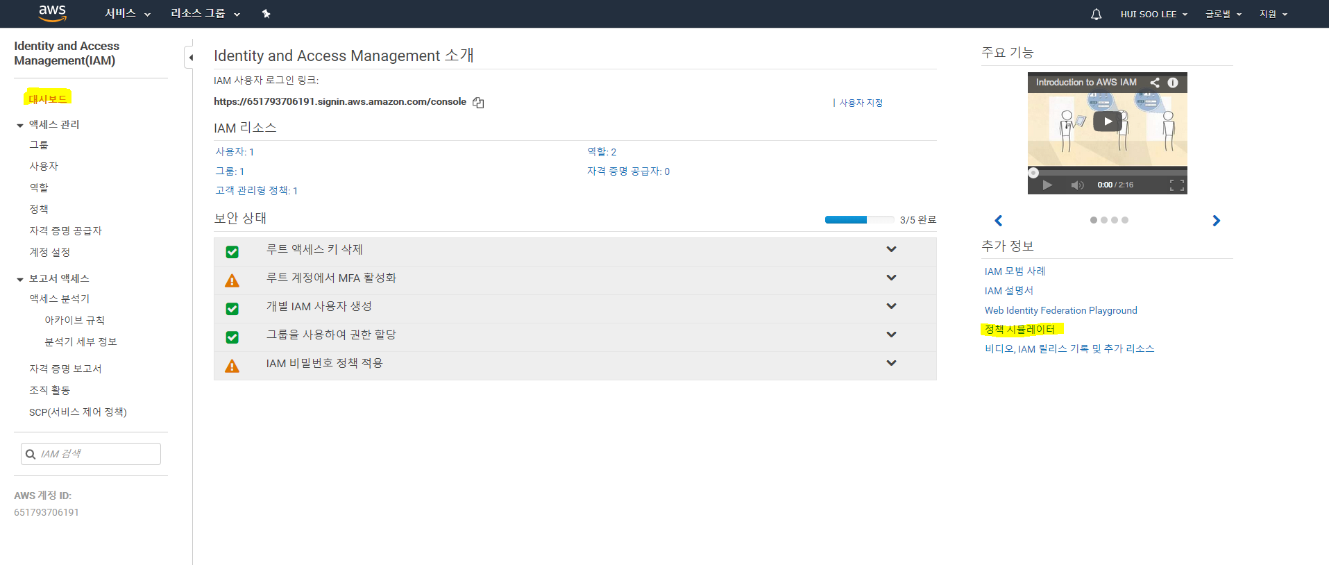 [AWS] IAM 실습 4) 정책 시뮬레이터 / 사용자 권한 추가