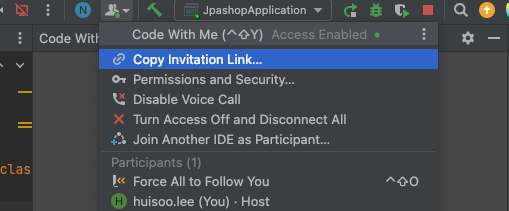 재미나게도 intellij에는 페어프로그래밍을 할 수 있도록 Code With me 플러그인을 제공하고 있었다. (2021. 2월 버전부터 설치 되어있음.)
