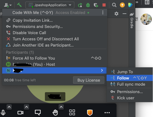 물론, 유료버전의 인텔리제이를 사용하면 codewithme도 무제한으로 제공되는 것으로 확인된다.