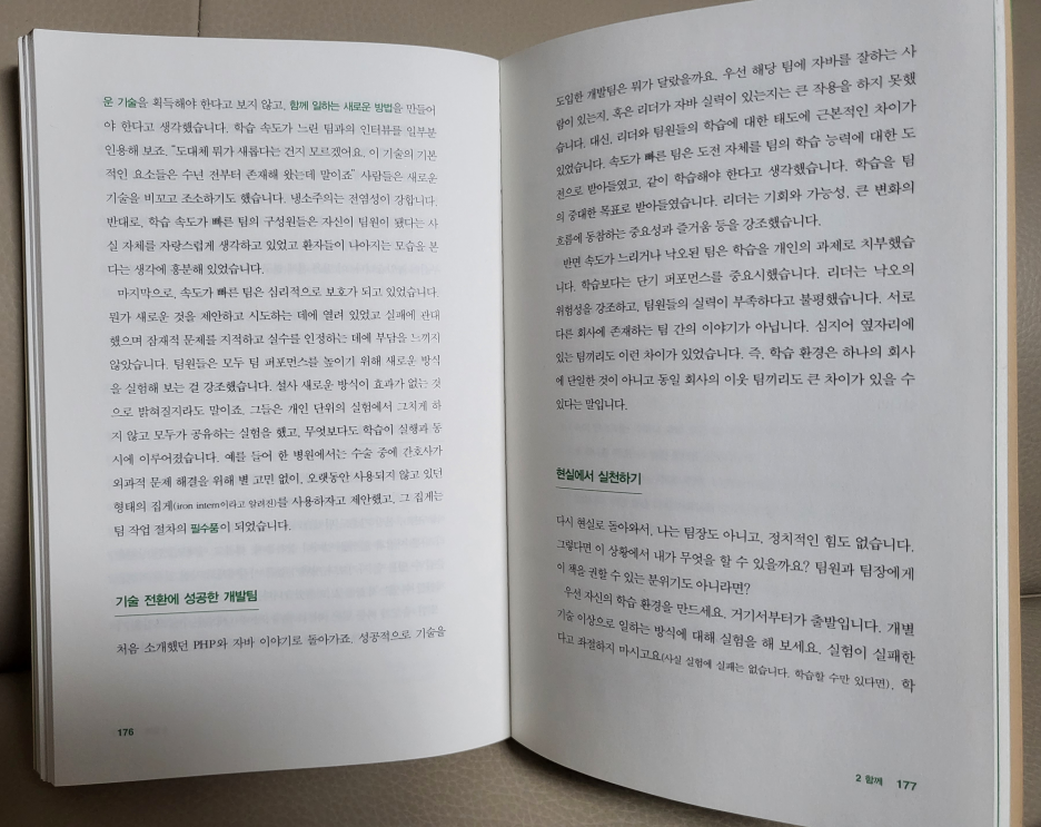 반면 낙오된 팀은 학습을 개인의 과제로 치부했습니다. 단기 퍼포먼스를 중요시 했고, 리더는 팀원들의 실력이 부족하다고 불평했습니다.
