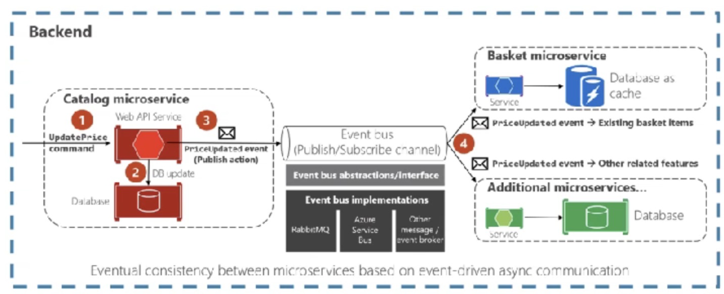 5. MSA 구현시 개발이 복잡해지고, 운영 숙련도가 필요해지고, 배포가 복잡해지고, 통합테스트가 어려워지는 등 MSA의 한계를 극복하기 위해 EDA란 개념이 나왔으며, Kafka와 같은 메시지큐에 Producer가 Event를 만들어서 Event Bus에 발행하면 Event 소비하는 서비스(Consumer)가 필요한 Event를 가져다 사용하는 구조입니다.